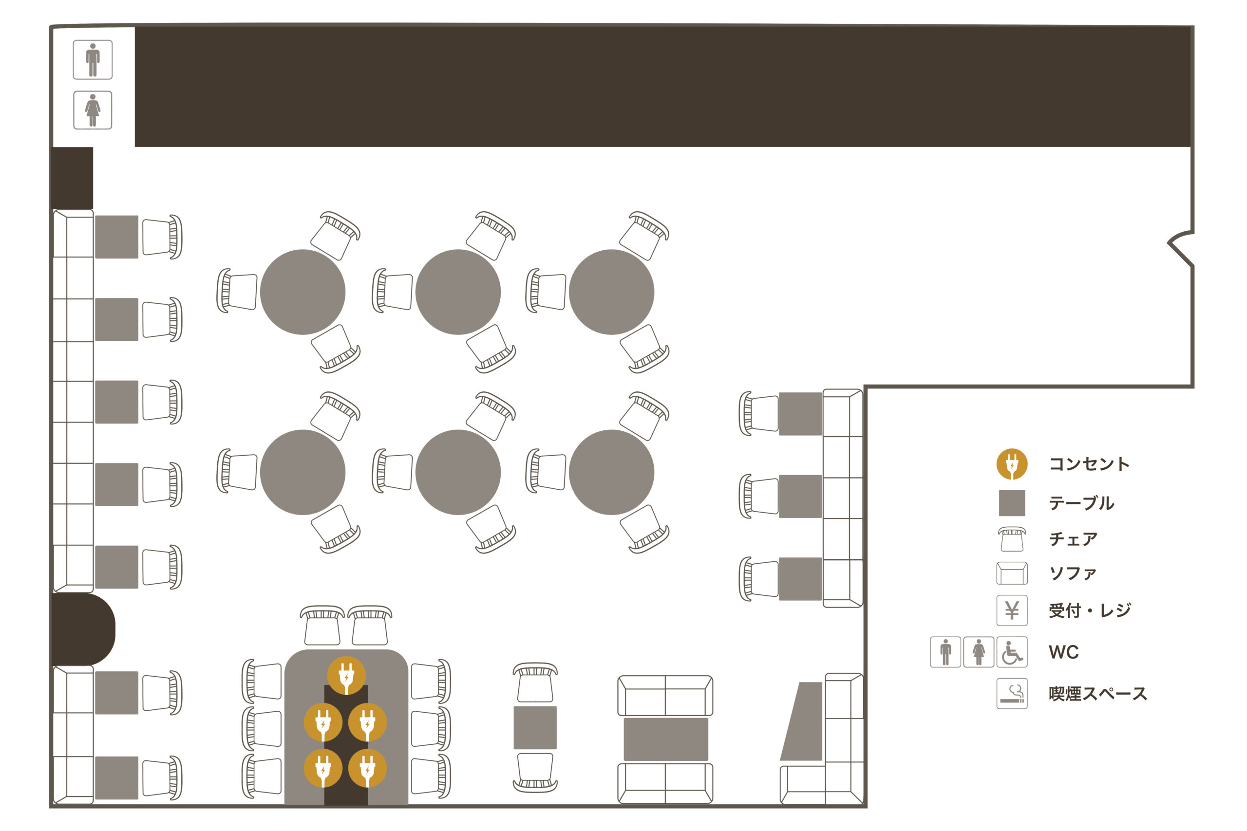 茶屋町の玄関口「NUchayamachi」2Fに位置するこのカフェは、エッジの効いたアパレルショップが集うビル内にあります。広々とした店内には大きな窓があり、ソファー席やテーブル席が配置されているため、様々なシーンで利用できます。